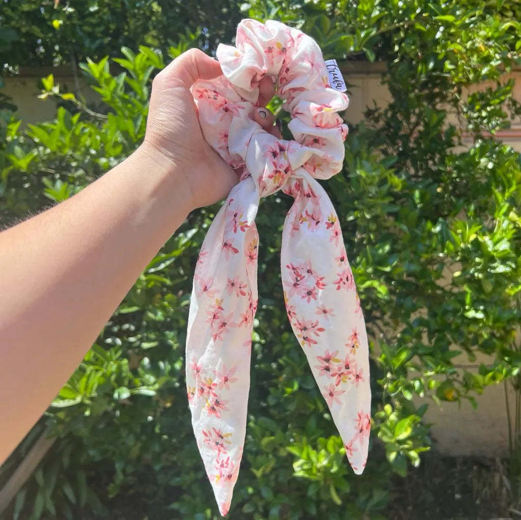 Scrunchie con Pañuelo Rosado de Flores